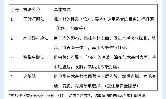 2、除木毛木毛一旦接觸或吸收水分或溶劑,就受濕潤膨脹而豎起來,使顏色無法均勻著色與木紋內(nèi)部,而堆積在它周圍,出現(xiàn)木紋(導(dǎo)管)內(nèi)部未著上顏色的不良,打磨后就出現(xiàn)了小白點(芝麻點)。所以,涂飾前一定要充分打磨去除木毛(薄片材料時,要避免砂穿),為涂裝和著色提供一個優(yōu)質(zhì)的基底條件。