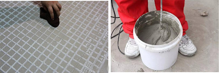 2、膠漿配制:先將液料加入桶中,攪拌同時(shí)加粉料攪拌至均勻無結(jié)塊方可使用;