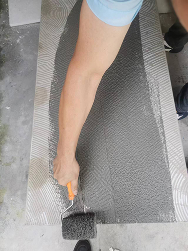 3、均勻涂刷:基面先抹上普通水泥砂漿,用抹刀將膠漿直接均勻刮到預(yù)處理的瓷磚背面,刮涂面積需80%以上,使之均勻分布,待背膠干固后,再搭配水泥砂漿或瓷磚膠進(jìn)行瓷磚鋪貼施工;
