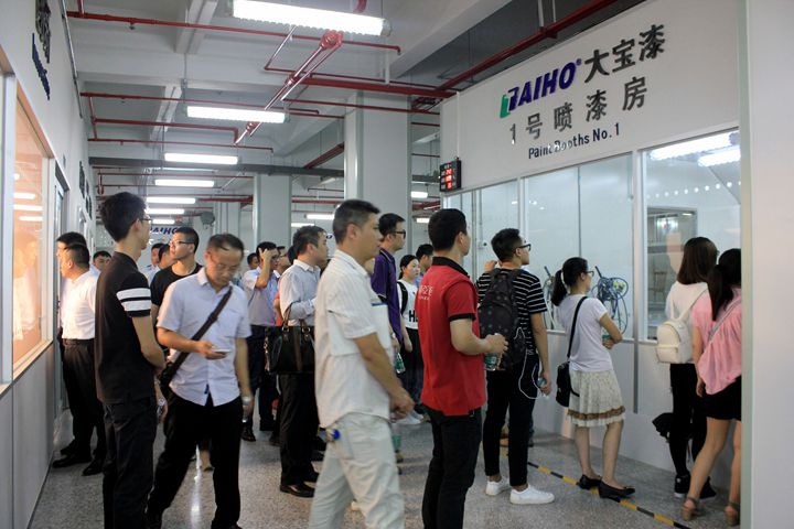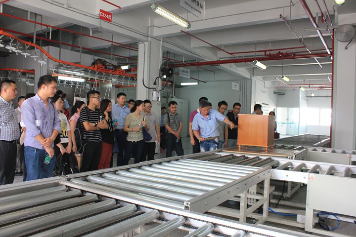 會后,在大寶化工平義聰課長的全程陪同下,索菲亞參訪人員一行先后到東莞大寶化工色板中心、中央實驗室、后花園、污水處理中心、智能涂裝測試線等進行參觀。技術人員為到訪人員講解廠區(qū)各區(qū)域規(guī)劃性能,在參觀色板中心時,索菲亞同仁們對大寶漆色板表現(xiàn)出極大的興趣,不斷與大寶漆工作人員交流探討心中疑問。
