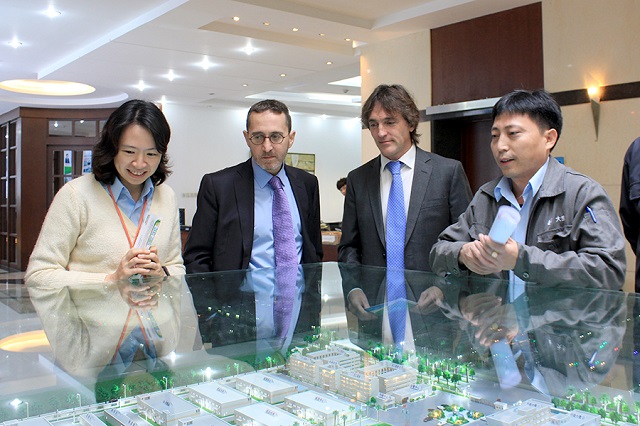 Barpimo公司人員先到大寶國際模型區(qū)進(jìn)行了解,在業(yè)務(wù)部陳衛(wèi)華副理的介紹下,參訪人員對大寶集團(tuán)各企業(yè)體的廠區(qū)規(guī)劃及歷史發(fā)展有了一個初步的認(rèn)識。隨后參訪人員對研發(fā)課、中央實(shí)驗(yàn)室、國內(nèi)市場展廳、色板中心和智能涂裝測試線等一一進(jìn)行參觀。