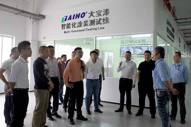 中國(guó)木門技術(shù)聯(lián)盟一行參觀大寶化工智能涂裝線