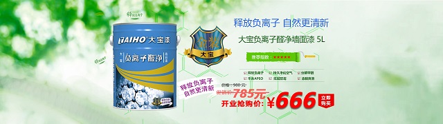 在電子商務的大浪潮當中,大寶漆始終緊隨市場步伐,不斷完善戰(zhàn)略布局、升級產(chǎn)品、優(yōu)化服務,天貓旗艦店的建立將為消費者帶來更高品質(zhì)的涂料產(chǎn)品體驗!