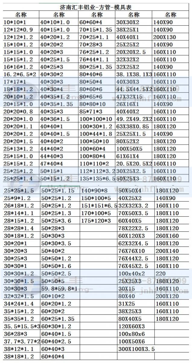 以下為濟南匯豐鋁業部分規格模具表: