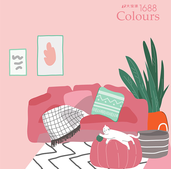 正值換季季節(jié),不妨嘗試看看以大寶設(shè)彩家推薦2023年度關(guān)鍵色/R7020-85P桃紅為主色調(diào)的系列搭配,將這些繽紛顏色運(yùn)用于居家環(huán)境中吧!
